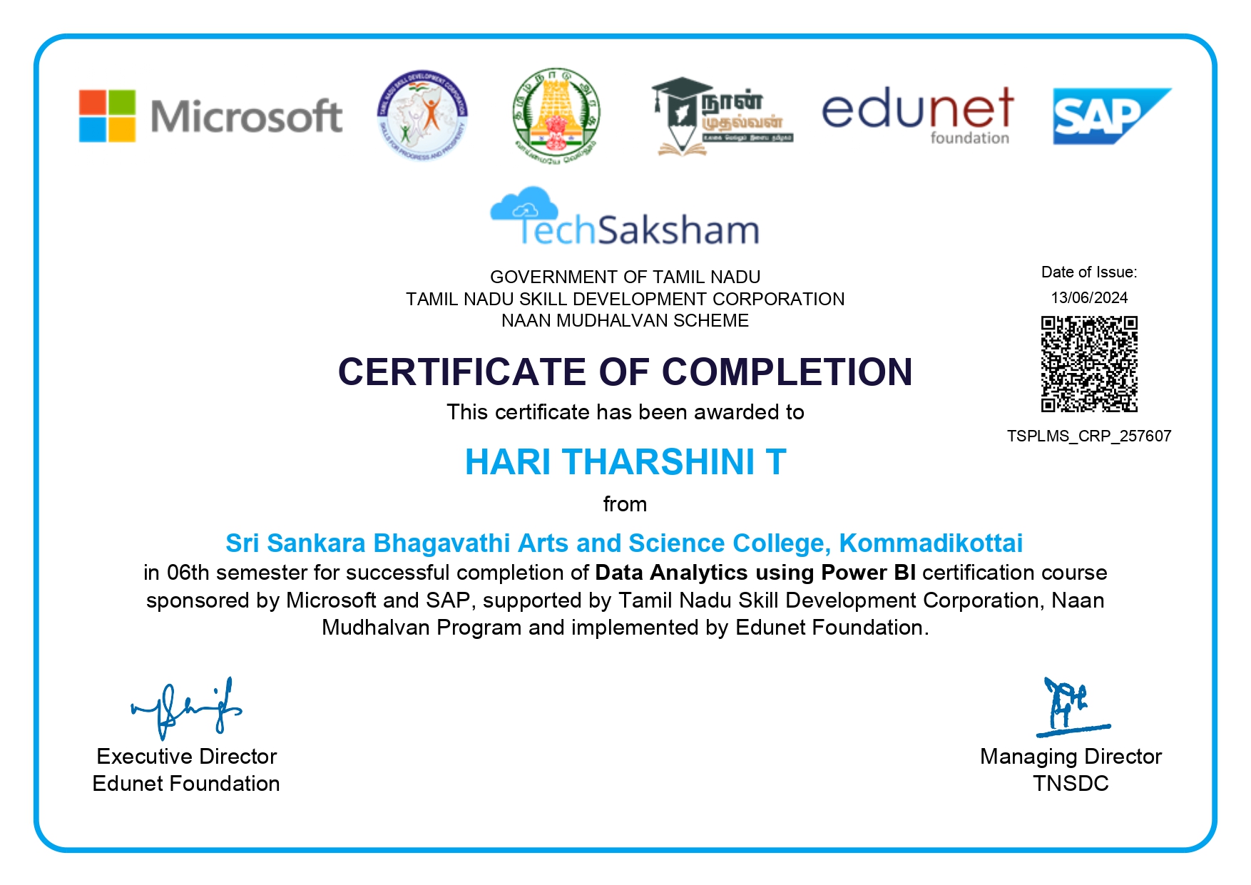Issued Mar 2023 By Naan Mudhalvan & Microsoft